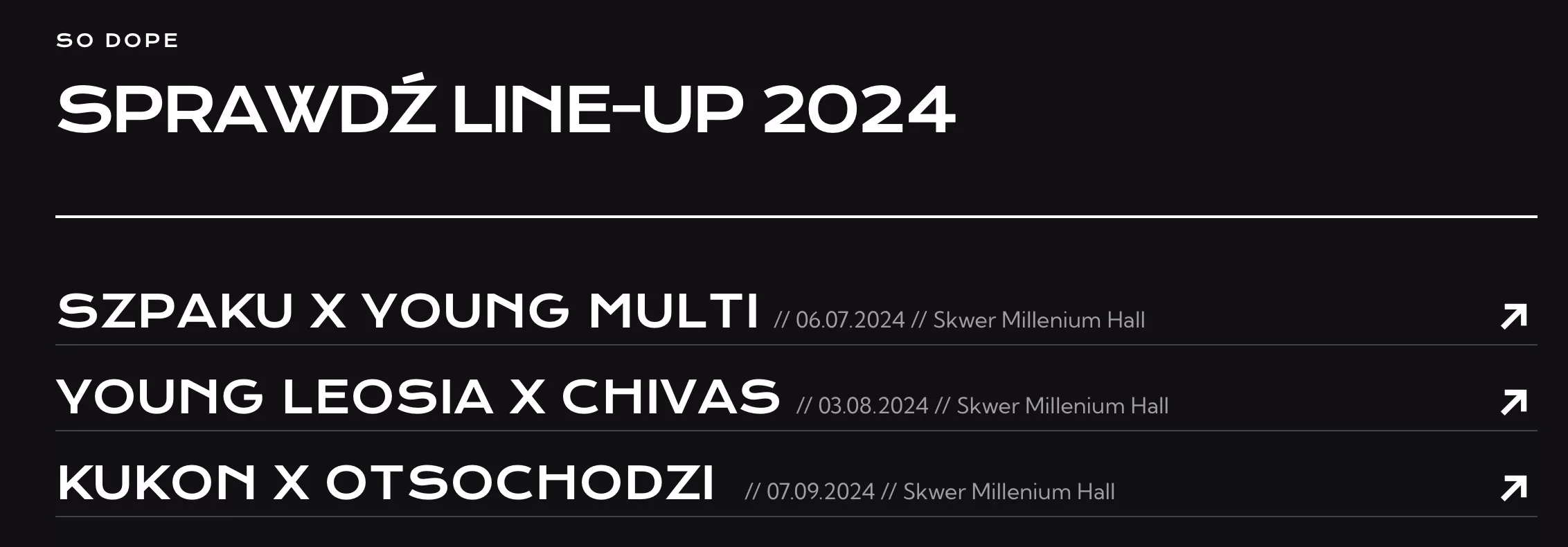 Koncerty organizowane w ramach projektu odbywać się będą od lipca do września 2024 roku na plenerowej scenie znajdującej się na skwerze galerii Millenium Hall. Wydarzenie rozpocznie podwójny koncert – 6 lipca na scenie pojawi się twórca kilku albumów muzycznych m.in. Atypowy i Różowa Pantera – Szpaku, a także Young Multi. W kolejnym miesiącu, 3 sierpnia wystąpi raperka o charakterystycznych różowych włosach, znana m.in. z takich hitów, jak Szklanki, BFF oraz Malibu Barbie – Young Leosia. Innym artystą, którego usłyszmy tego dnia, będzie Chivas. Ostatni koncert w ramach festiwalu odbędzie się 7 września, na skwerze Millenium Hal. Wystąpi wtedy Kukon, który z pewnością zaprezentuje publiczności swój utwór Miniówa oraz Otsochodzi, którego kojarzymy z tekstów takich jak Nie, nie, Nowy kolor i Piegi.