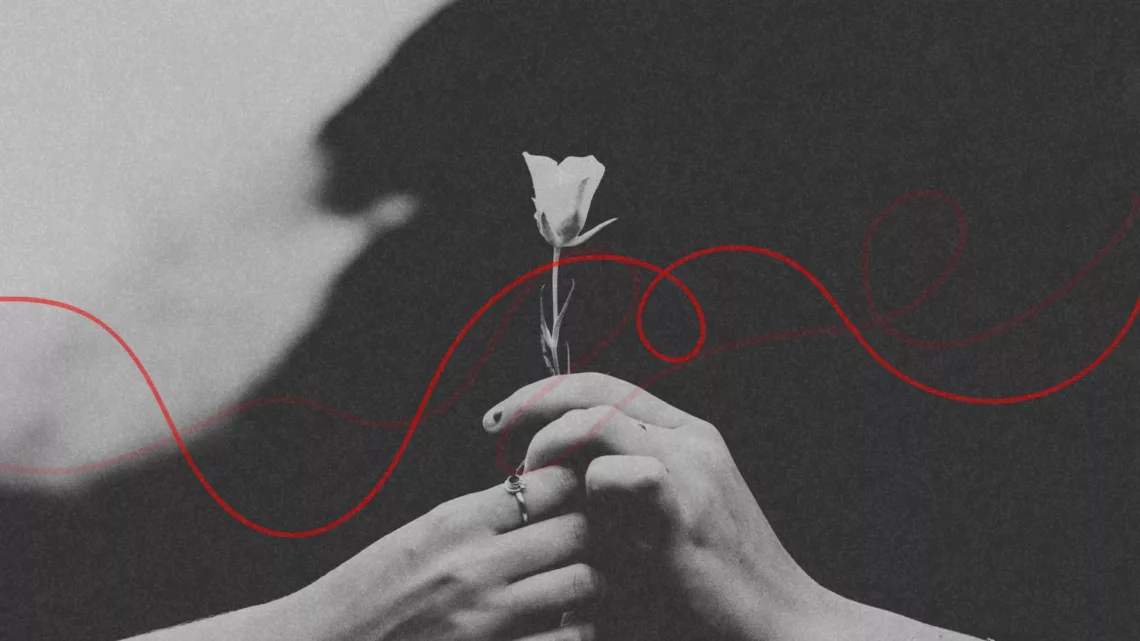 Na jej otwartą dłoń, gdzie kwitł ich wspólny kwiat. Złożony z jego blizny i jej brudnych płatków.