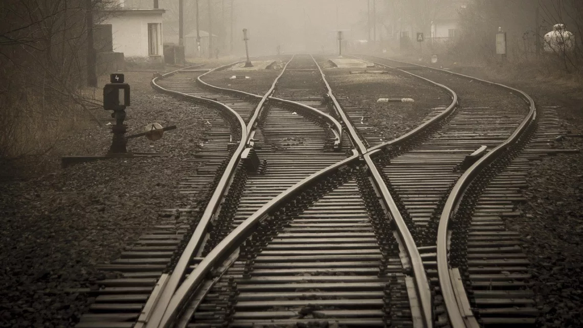 Ciemno. Śniegu prawie nie ma. Prawie, bo jeszcze gdzieś przy torach widnieje. Przez okno pociągu niemalże nic nie widać. Z wyjątkiem szyn i stacji, do których dojeżdżamy, gdyż znajdują się tam lampy lub fragment oświetlonej drogi.