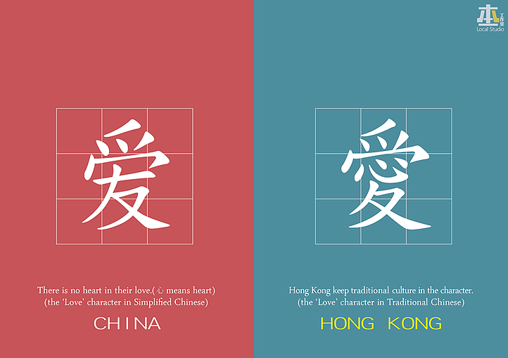 Po lewej mamy system uproszczony, a po prawej – tradycyjny. Różnią się ilością kresek, wymową (lewy – ài, prawy – ngoi3)