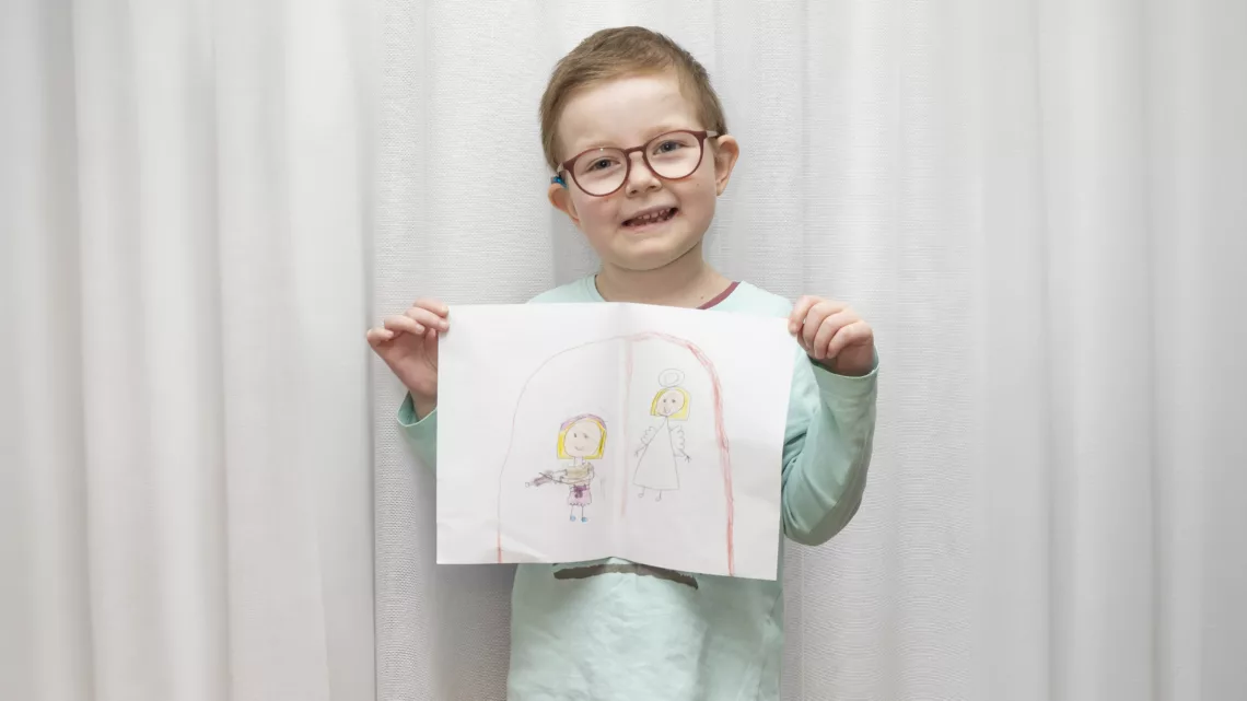 Amelka nie było pewna od początku, czego pragnie, ale jednak podczas zabawy oraz rozmowy powiedziała, że jej ulubioną postacią z bajek jest Elza z Krainy Lodu i bardzo chciałaby ją poznać. Najlepiej na balu księżniczkowym. Narysowała nam kreacje, w której chciałaby wystąpić – bardzo szczegółowo. Jest to suknia Roszpunki, koniecznie musi być fioletowa. Do tego długie blond włosy i korona. Sala balowa powinna zawierać przede wszystkim kolorowe błyszczące serduszka. – wolontariuszka Ola
